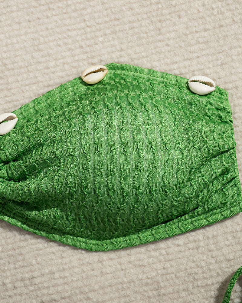 Catch the sun in style with this enchanting seashell-adorned bikini set. The cross-neck halter top offers flattering support and a trendy silhouette, while delicate seashell embellishments add a touch of coastal charm. Perfect for beach days, pool parties, or tropical getaways, this set blends playful detail with confident allure.