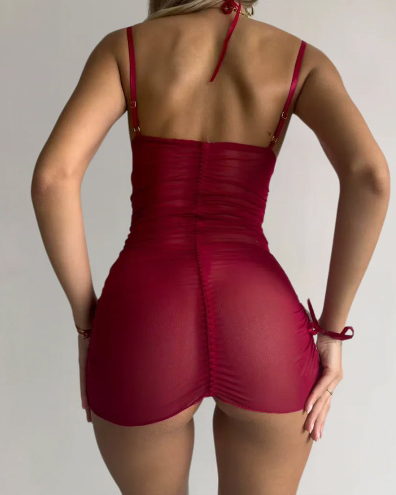 Embrace festive fantasy in this alluring nightgown set. Featuring a soft velvet bodice accented with sheer mesh panels and playful bunny ears, it blends cozy holiday charm with provocative elegance. Perfect for romantic Christmas evenings or playful surprises, this set brings warmth and seduction together.