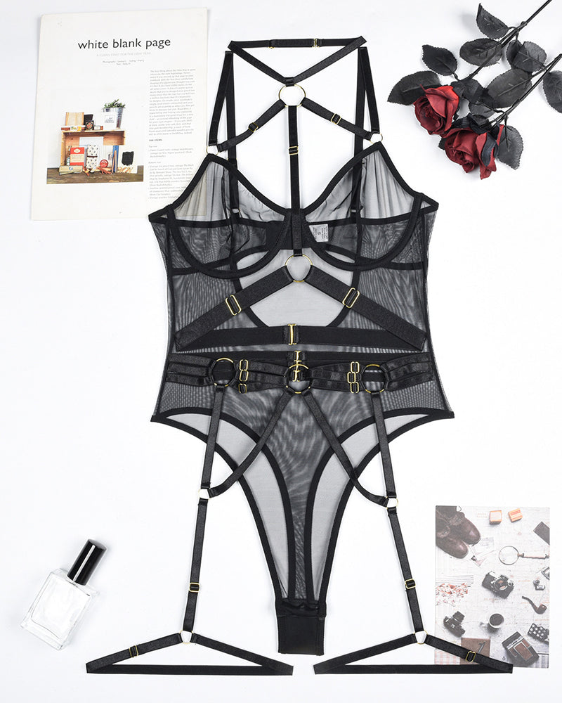 Unleash your wild side in this daring leopard print mesh bodysuit. Featuring a provocative see-through design with strategic bondage-style straps and supportive underwire, this piece combines fierce style with confident allure. The stretchy mesh and adjustable details ensure a comfortable yet unforgettable fit.