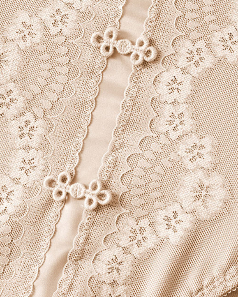 Modern Elegance: Chinese-inspired knot detail with lace and sheer mesh
