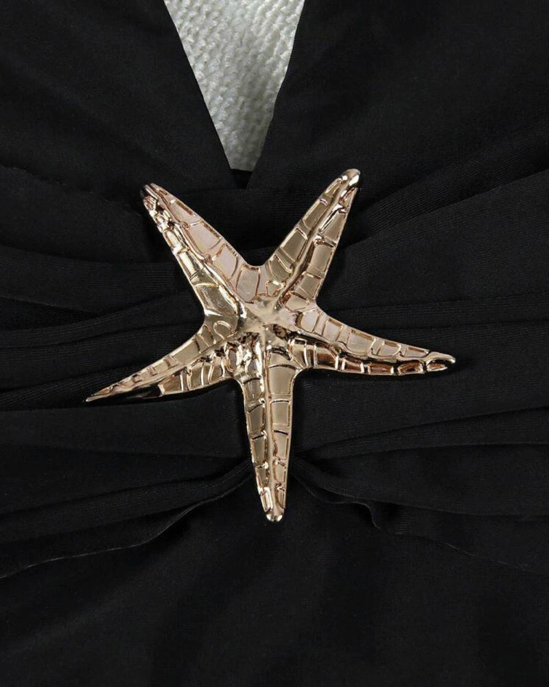 Deep V Halter Neck: Adjustable halter tie provides lift and support while elongating the silhouette.
