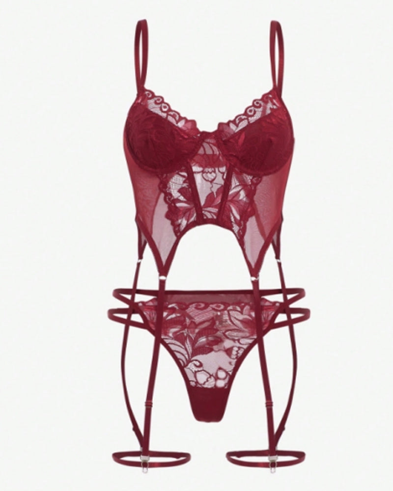 Indulge in timeless elegance with this breathtaking lingerie set. Delicate flower lace adorns soft, sheer mesh that beautifully contrasts coverage with revelation. Designed to flatter your figure, this set creates a perfect balance of sophistication and sensual allure, making it an unforgettable choice for special moments.