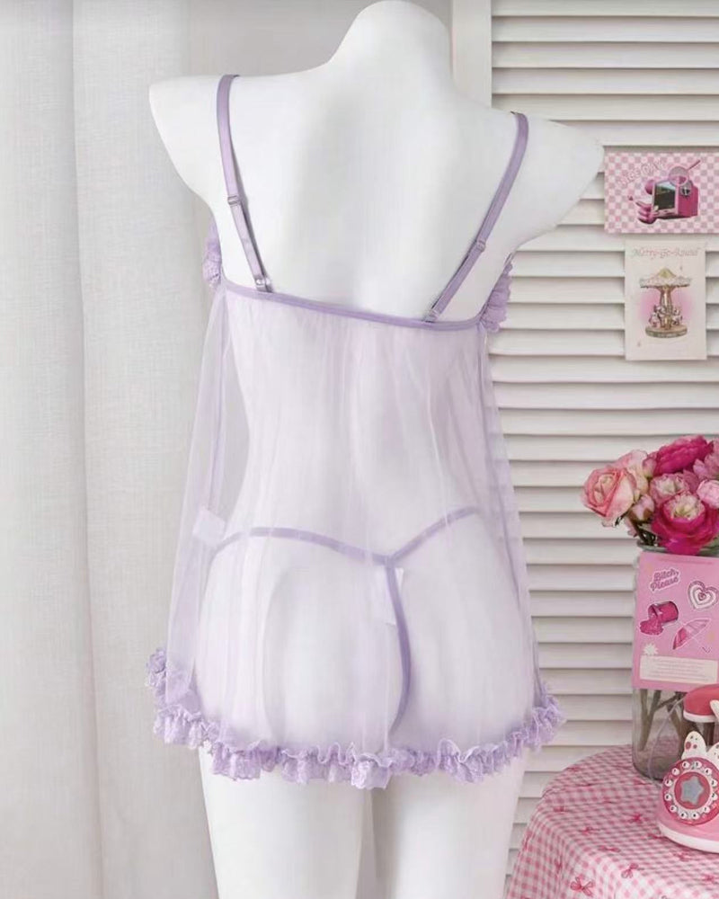 Indulge in delicate allure with this exquisite lingerie set. Featuring a sleek slip dress design crafted from soft lace and sheer mesh, it creates a captivating play of reveal and conceal. Perfect for romantic evenings or confident lounging, this set blends sensual elegance with effortless style.