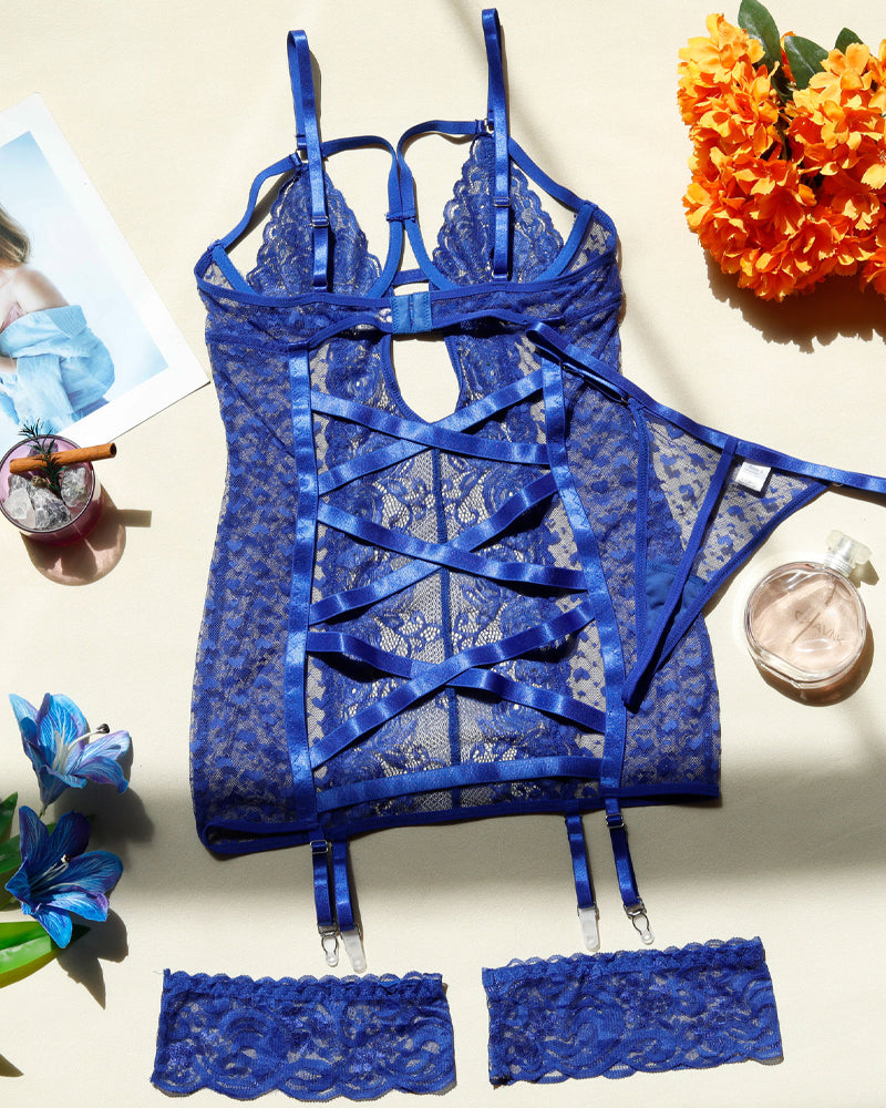 Indulge in delicate allure with this exquisite lingerie nightgown set. Featuring intricate openwork lace and soft see-through mesh, it creates a captivating play of reveal and conceal. Designed to drape gracefully over your curves, this ensemble offers the perfect balance of romantic elegance and sensual charm.
