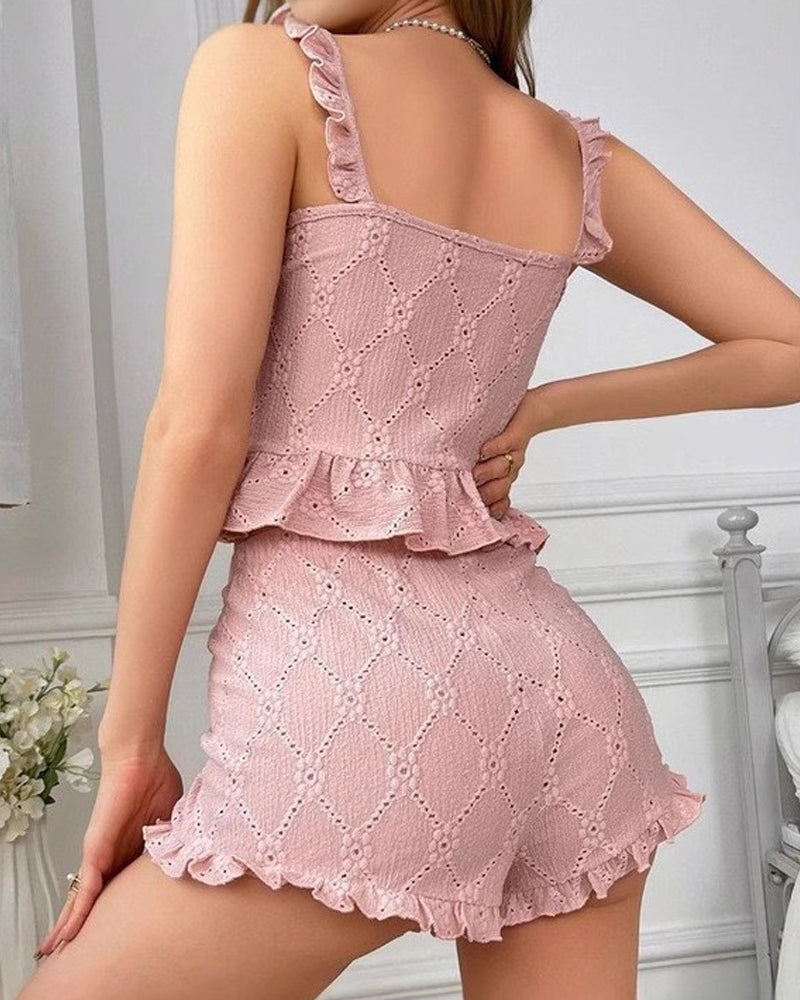 V-neck Ruffled Sleeveless Top and Shorts Pajama Set