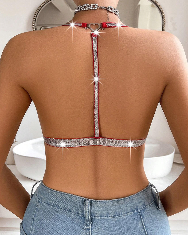 Enjoy effortless elegance with this wire-free lace bra. The deep V-neckline is accented with a delicate silver ribbon and convenient front closure, offering a flattering fit without underwire. Perfect for daily comfort or adding a romantic touch to your lingerie collection, this bra combines style with gentle support.