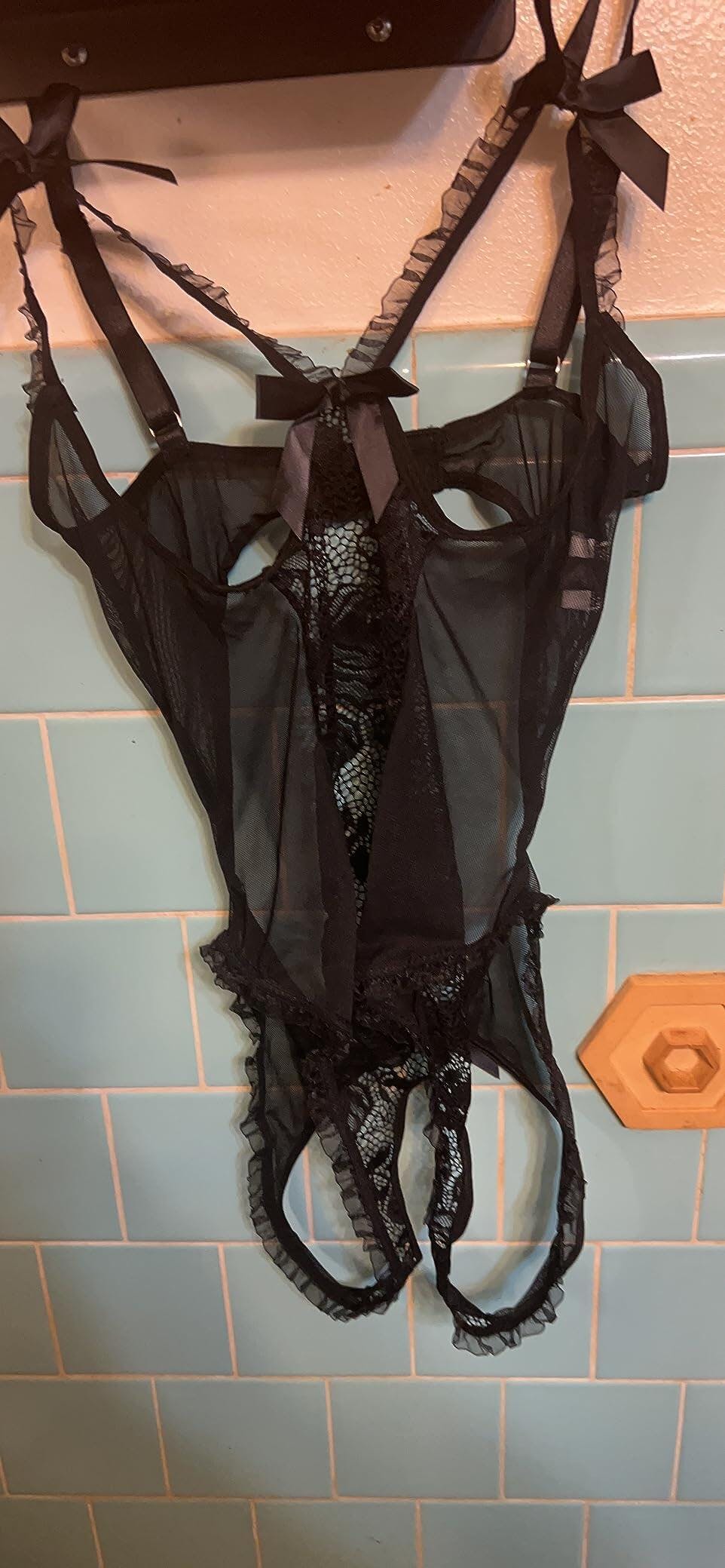 It’s cute. It stretches. It’s open in the front top and bottom and in the back. Very sexy. Fit nice as well.