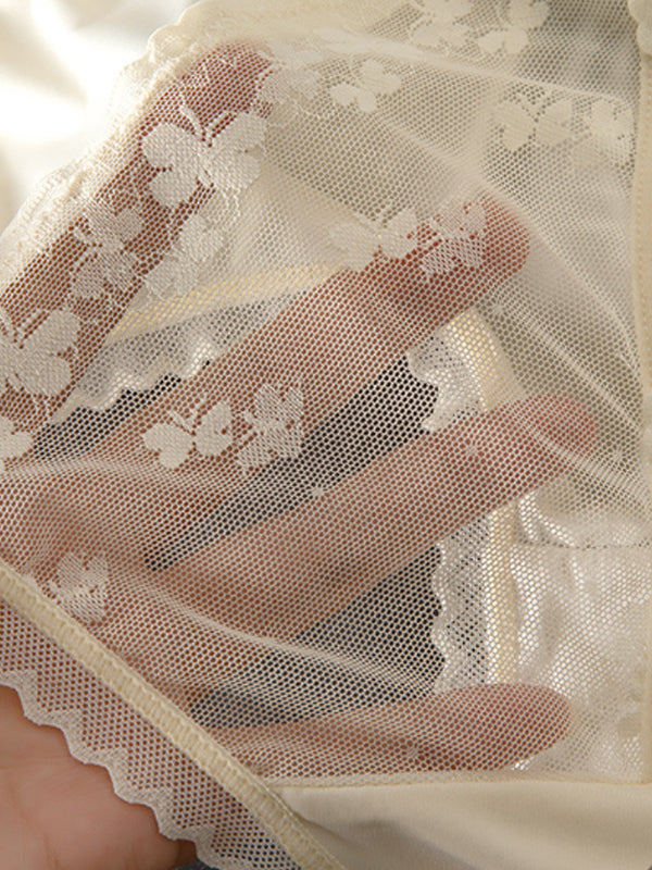 Delicate allure meets invisible comfort. These panties feature a seamless front and a stunning openwork lace back, offering a flirty peek of skin with every move—perfect for adding a touch of romance to your everyday essentials.