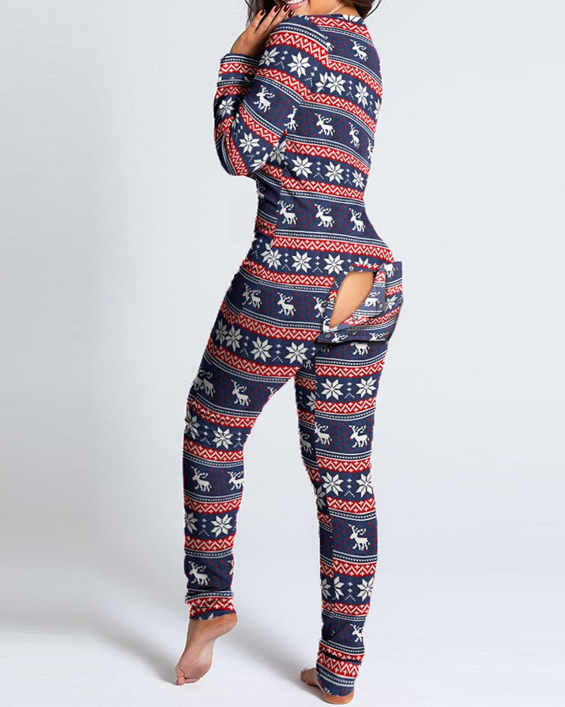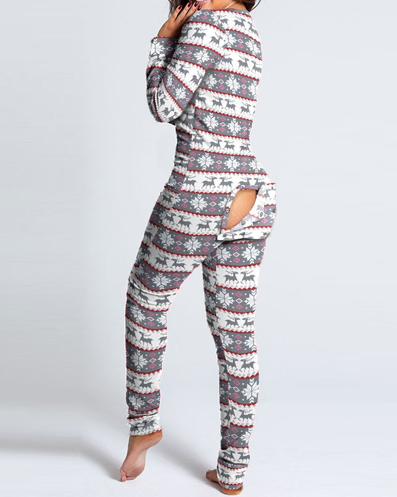 Cozy meets festive style in this chic Christmas jumpsuit pajama! The deep V-neck and long sleeves offer a flattering look, while the convenient back button closure and rear opening design make it easy to wear. Perfect for holiday lounging, family gatherings, or festive photos, this set combines comfort with seasonal charm.