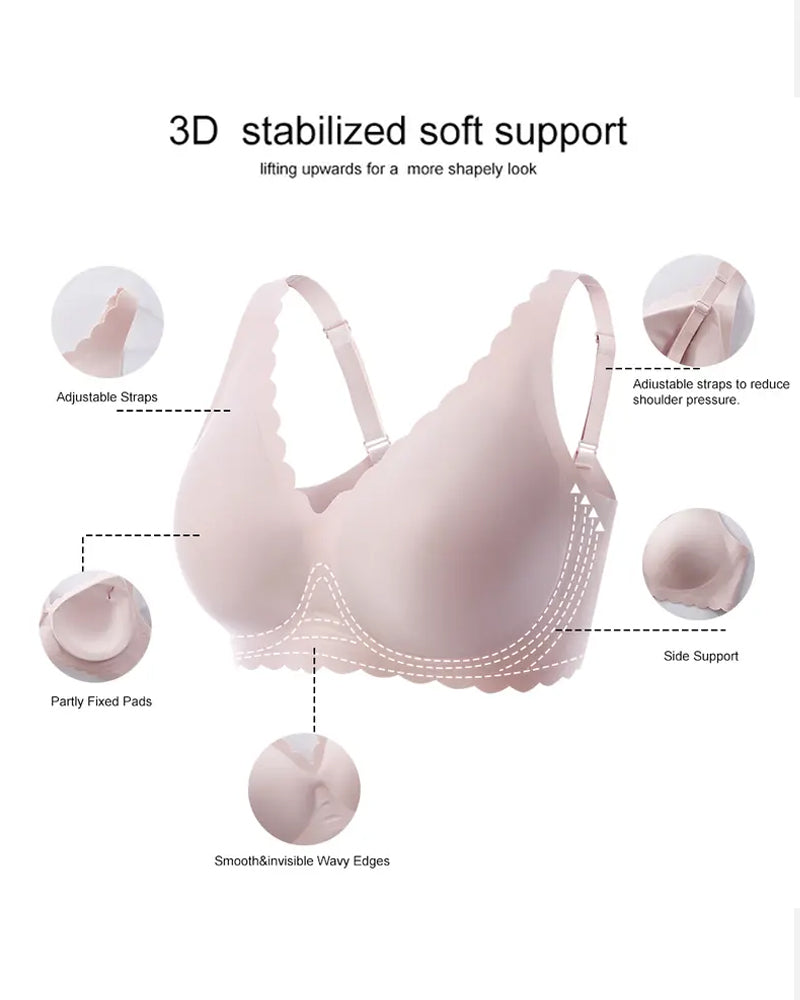 Experience cloud-like comfort with a flattering lift in our seamless push-up bra. Crafted from buttery-soft nylon and spandex, it offers a deep V-neck design and U-shaped back for a smooth, bulge-free silhouette. The innovative "Jelly Strip" support shapes and uplifts naturally—no wires needed—while adjustable straps ensure all-day security. Perfect for work, leisure, or light activity, it’s the invisible, confidence-boosting bra you’ll want to wear every day.