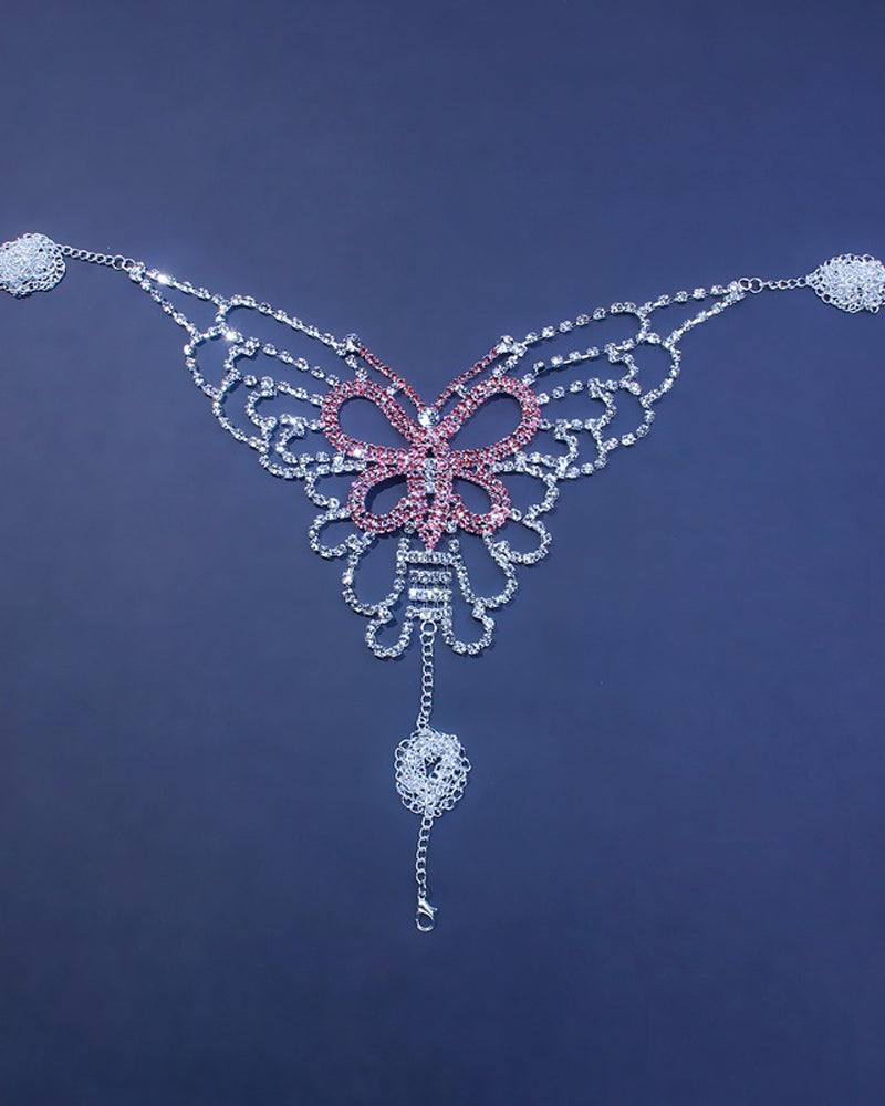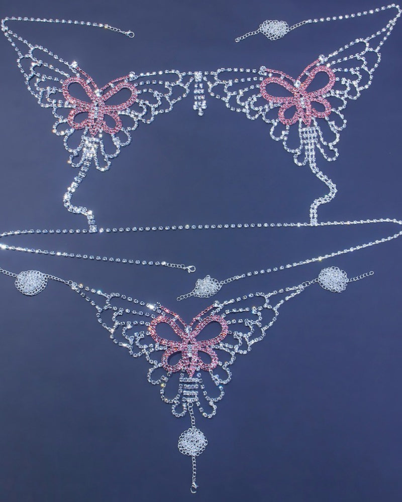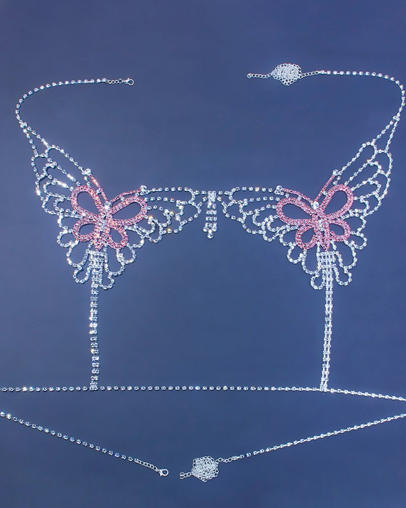 Transform your silhouette into a work of art with this mesmerizing body chain set. Featuring delicate butterfly charms, shimmering rhinestones, and playful tassels, it drapes elegantly over a matching bra and panty. Perfect for parties, photoshoots, or intimate moments, this set blends bohemian allure with glamorous detailing.