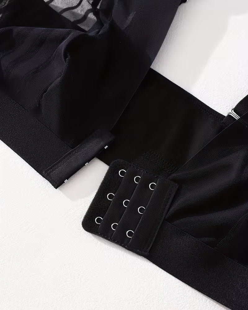 Sexy Deep V-neck Striped Mesh Paneling Front-closure Bra