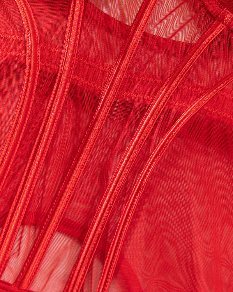 Sexy Mesh Breathable Body Shaping Split Steel Ring Gathered with Leg Ring Suit