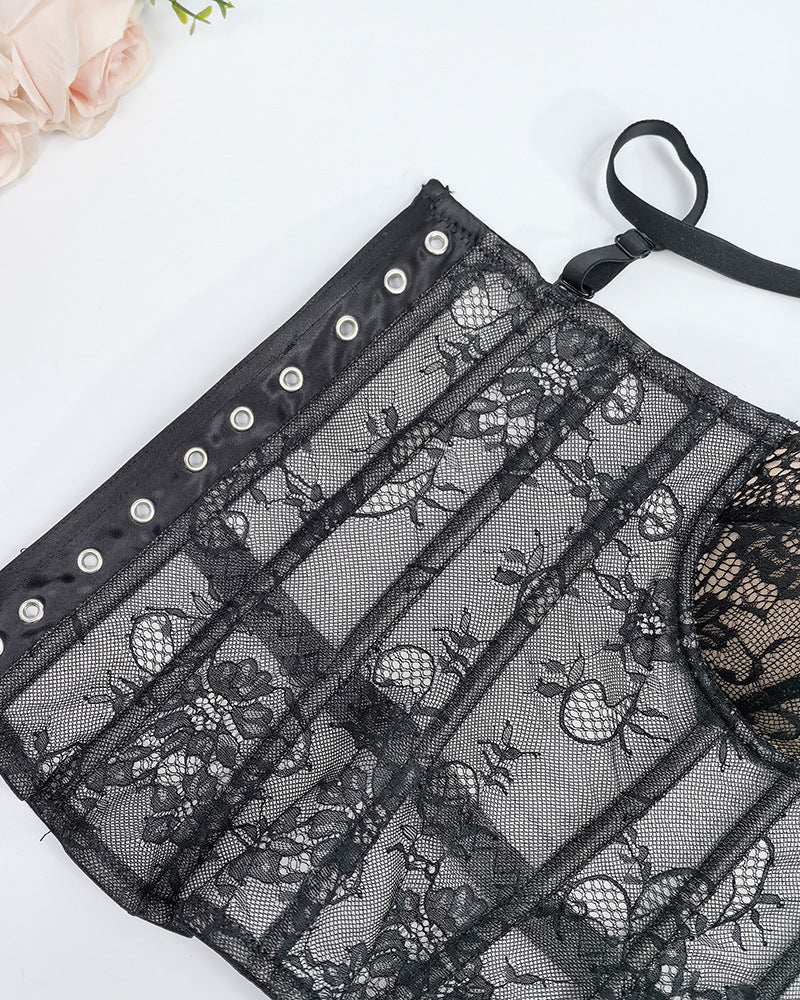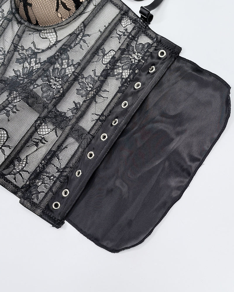 Material: Lace, Sheer Mesh & Polyester/Spandex Blend