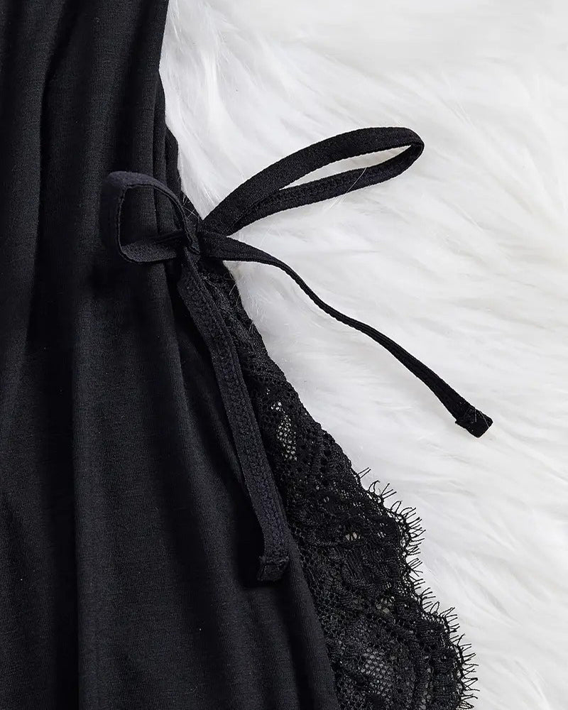 Ignite passion and elegance with the V-Neck Side Slits Lace Nightgown with G-String, the perfect blend of allure and sophistication. This stunning nightgown features a daring V-neckline and alluring side slits, designed to enhance your curves and create a mesmerizing silhouette. Paired with a matching G-string, this set is ideal for intimate evenings or special occasions, ensuring you feel confident and irresistible.