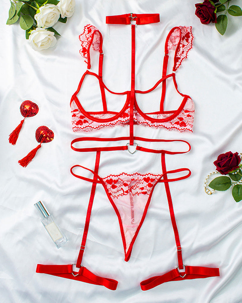 Reveal a bold twist on romance with this provocative set. Featuring sexy cutouts, romantic lace detailing, and matching heart-shaped nipple covers, it’s crafted for unforgettable Valentine’s moments—playful, daring, and irresistibly confident.