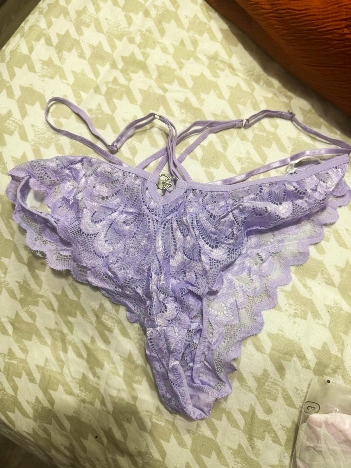 This set of four cross-back lace panties are fantastic. They are extremely silky smooth and well-made. These fit wonderfully because they are very stretchy without being too tight and rolling down. They are also adjustable (as in my photo) and comfy. The lace is very nice, and not at all scratchy or itchy. The pink and purple panties are a very true to the colors shown. These are comfortable enough to wear all day and night. I am planning on buying more since they're just so nice. I'm extremely happy with these. 💞💝💞